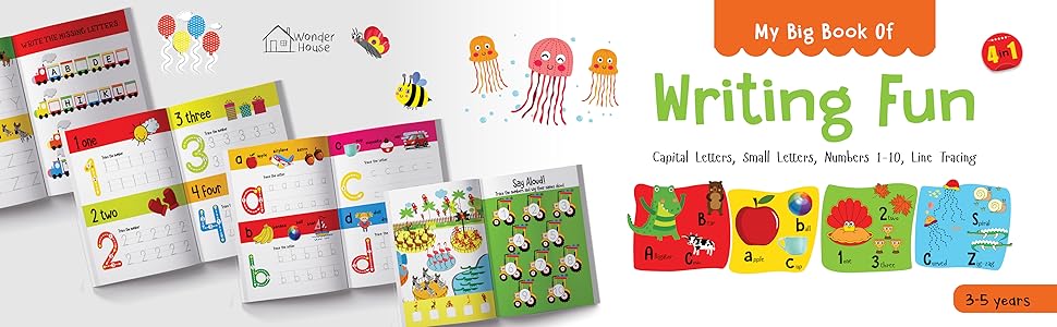 My Big Book of Writing Fun – Write and Practice Capital Letters, Small Letters, Numbers 1–10 & Line Tracing | All-in-One Early Writing Skills Workbook for Kids | Pre-Writing, Alphabet & Number Practice for Preschool & Kindergarten | Ages 3–6 Years | Hours of Learning time | Perfect for Gifting