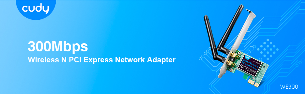 Cudy WE300 N300 PCIe WiFi Card for PC, 300Mbps WiFi PCIe Card, Wireless Network Card, Free Driver on Windows 10/8.1/8