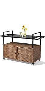 This patio buffet server cart is exactly what we were looking for. It's better than we thought it would be at the price. The quality of the materials is great, and it is very stable. Assembly was easy and we had no issues. Everything lined up accurately and extra screws were provided. While the instructions were just visual, the steps were easy to follow. Highly recommend.