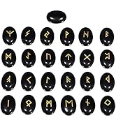The mookaitedecor Black Obsidian Runes Stones Set includes 24 hand-carved obsidian stones featuring the Elder Futhark runic alphabet with gold lettering, plus one blank stone. Accompanied by six faceted crystal pendulums wrapped in copper, this set is designed for divination, dowsing, meditation, and energy balancing. Compact and polished, the stones fit comfortably in your palm or pocket, making them perfect for on-the-go spiritual practice. Packaged in a velvet bag and gift box, this set is a sophisticated tool for healing, guidance, and mindful living.