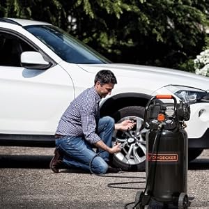 The Black & Decker BD 227/50V NK is a professional-grade air compressor featuring a powerful 2 HP motor, a space-saving 50L vertical tank, and a high air flow rate of 220 L/min. Designed for versatility and portability, it includes large wheels, a convenient handle, and cable reel hooks, making it ideal for efficient, on-the-go use in demanding environments.
