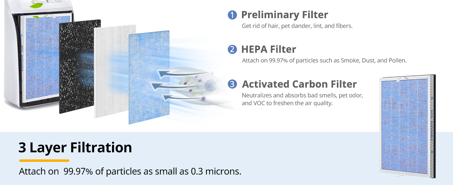 JORAIRMSA3 Replacement Filter Compatible with Membrane Solutions MSA3 Air Purifier, 3-Stage Filtration, 2 Pack