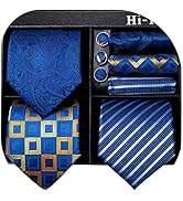 The Hi-Tie Silk Ties Set offers a premium 4-piece men's accessory collection featuring a 59-inch long, 3.35-inch wide silk necktie, matching pocket square, cufflinks, and clip pin. Crafted with 1200 high-quality stitches, it delivers durability and a smooth finish. With over 1000 vibrant colors and unique patterns like paisley, floral, and plaid, this set is designed to complement any formal or casual occasion, backed by responsive customer support.