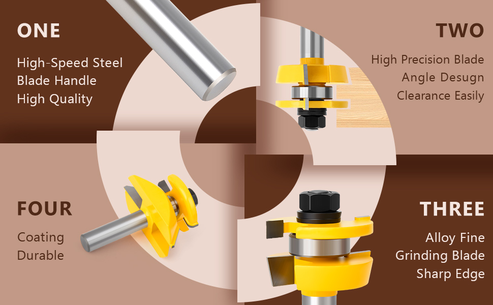 MEIGGTOOL1/2 Inch Shank Bevel Stile and Rail Router Bit with Back-Cutter Panel Raiser Set of 3 PCS