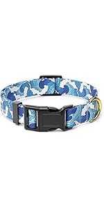 The Rnivvi Dog Collar is an excellent option if you're looking for a durable dog collar that is well-made, comfortable for your dog to wear, and features a secure latch that ensures it won't accidentally open or come loose. The collar is beautifully printed, and I love how brightly the waves are printed. The clasp snaps closed securely, the D-ring is thick and securely stitched into the material, ensuring it stays in place during walks, and the material is tightly woven so I don't think it will be wearing out anytime soon. It's both attractive and secure, and it doesn't seem to wear down at my dog's fur or irritate his skin. The only issue I had with this particular collar is that it ran large. My dog usually wears a small collar, but I found that the X-Small was better suited to his size. Though it's listed as 3/4" wide, the small size collar thickness was a bit larger than 3/4" and was just too bulky on my pup. This will vary from dog to dog - I just found that the X-small was better suited for my scrawny, lanky pup. Overall, it's a beautiful collar that's durable and a great value for the cost. I will likely purchase it again in different patterns to "expand his wardrobe" for holidays.