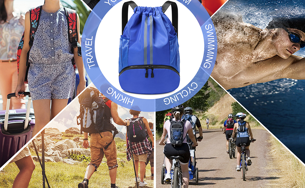 CHEPULA Drawstring Gym Bag, Large Sports Backpack String Swim Drawstring PE Bags for Women Men, Travel Beach School Bag with Waterproof