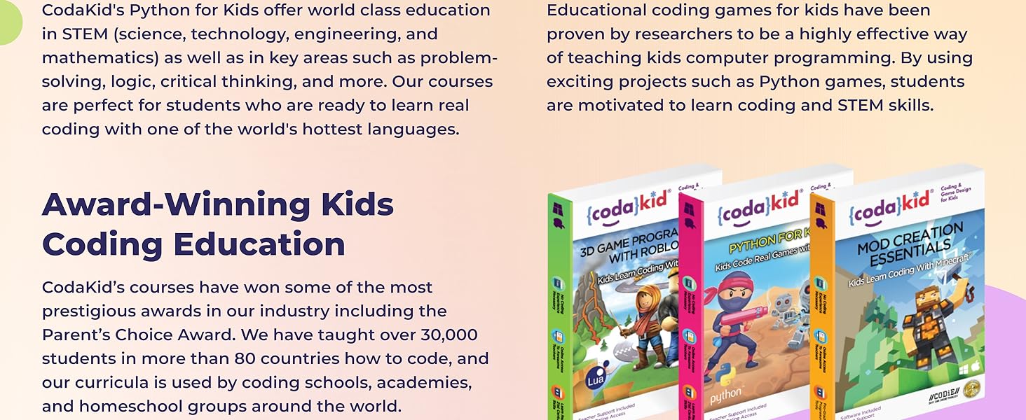 CodaKid Code Python is an award-winning, self-paced online coding course designed for kids aged 10 and up. It offers over 40 hours of interactive lessons teaching real Python programming through professional game design on Mac and PC. With live mentor support available for 12 months, students gain authentic coding skills using industry-standard tools, making it the perfect STEM gift to ignite a passion for technology.