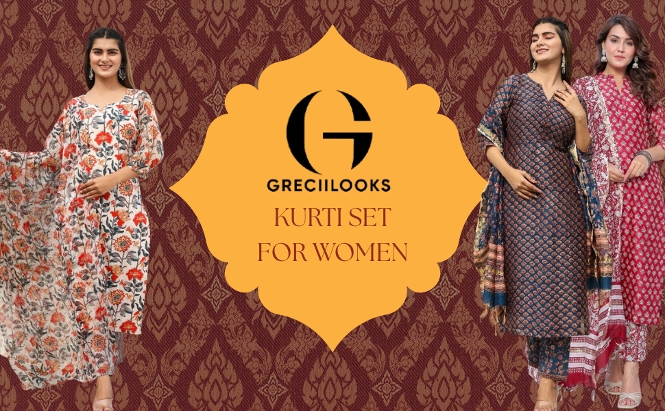 Greciilooks Womens Cotton Blend Kurta Set With Dupatta Kurti Set | Desertcart Poland