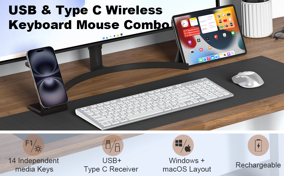 Wireless Keyboard Mouse Combo Usb Type C Rechargeable Slim Silent | Desertcart Poland